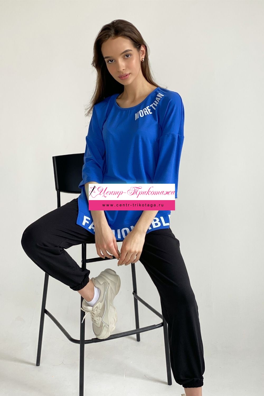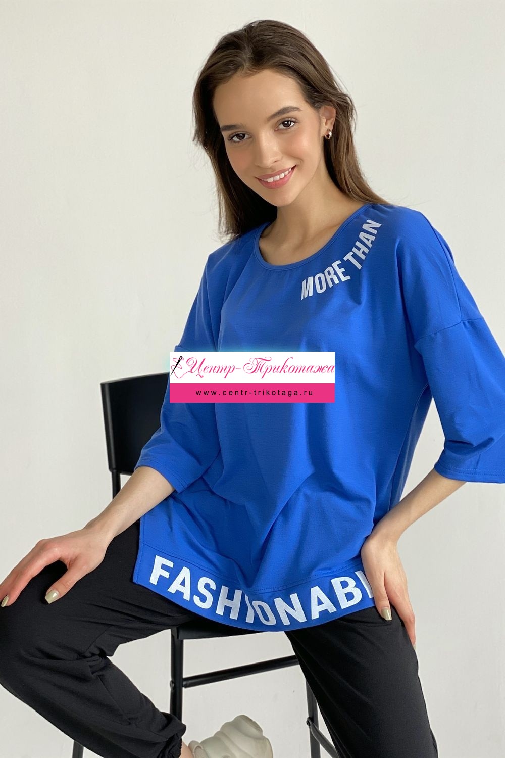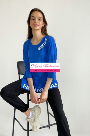 Туника прямая, свободная, с округлой горловиной, с асимметричным низом. Рукав длиной 3/4. Низ полочки и спинки обработаны обтачками. Горловина обработана бейкой из основного полотна.