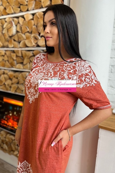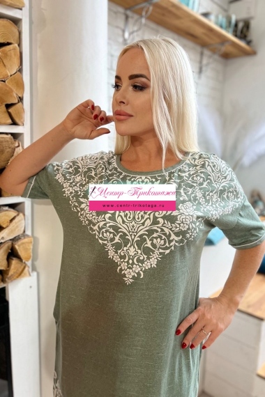 Туника прямого силуэта, с округлой горловиной, с разрезами в нижней части боковых швов. Горловина и низ рукавов обработаны бейкой из основного полотна.