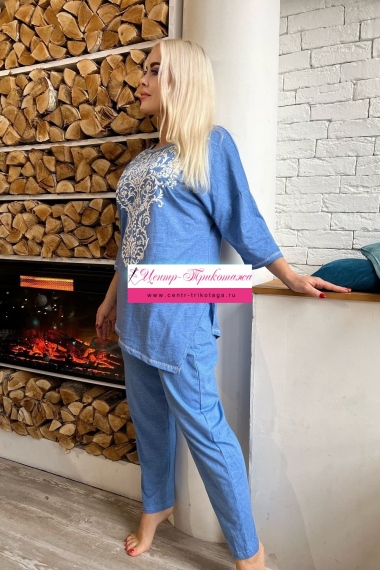Туника прямая, свободная, с округлой горловиной, с асимметричным низом. Рукав длиной 3/4. Горловина обработана бейкой из основного полотна.