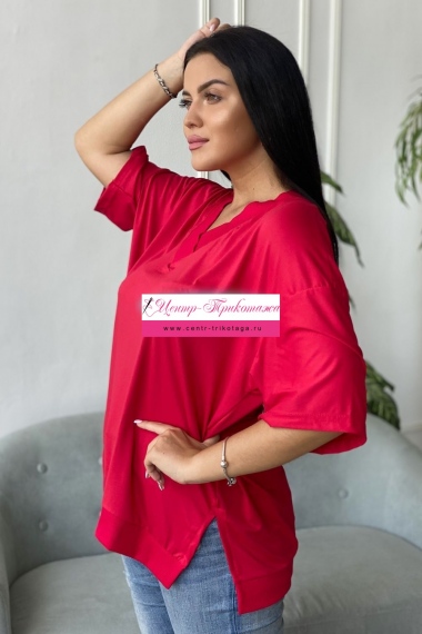 Туника женская полуприлегающего силуэта. Горловина округлая. Рукав цельнокроенный со швом, 3/4. На полочке кокетка. Внутренний карман с обтачкой в фигурном шве притачивания боковой части полочки к нижней части полочки. Спинка длиннее полочки.
