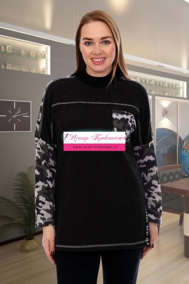Туника прямого силуэта, длиной выше колена, с округлой горловиной, с карманами в боковых швах. Рукав длиной 3/4. С разрезами в нижней части боковых швов. Горловина обработана обтачкой из основного полотна.